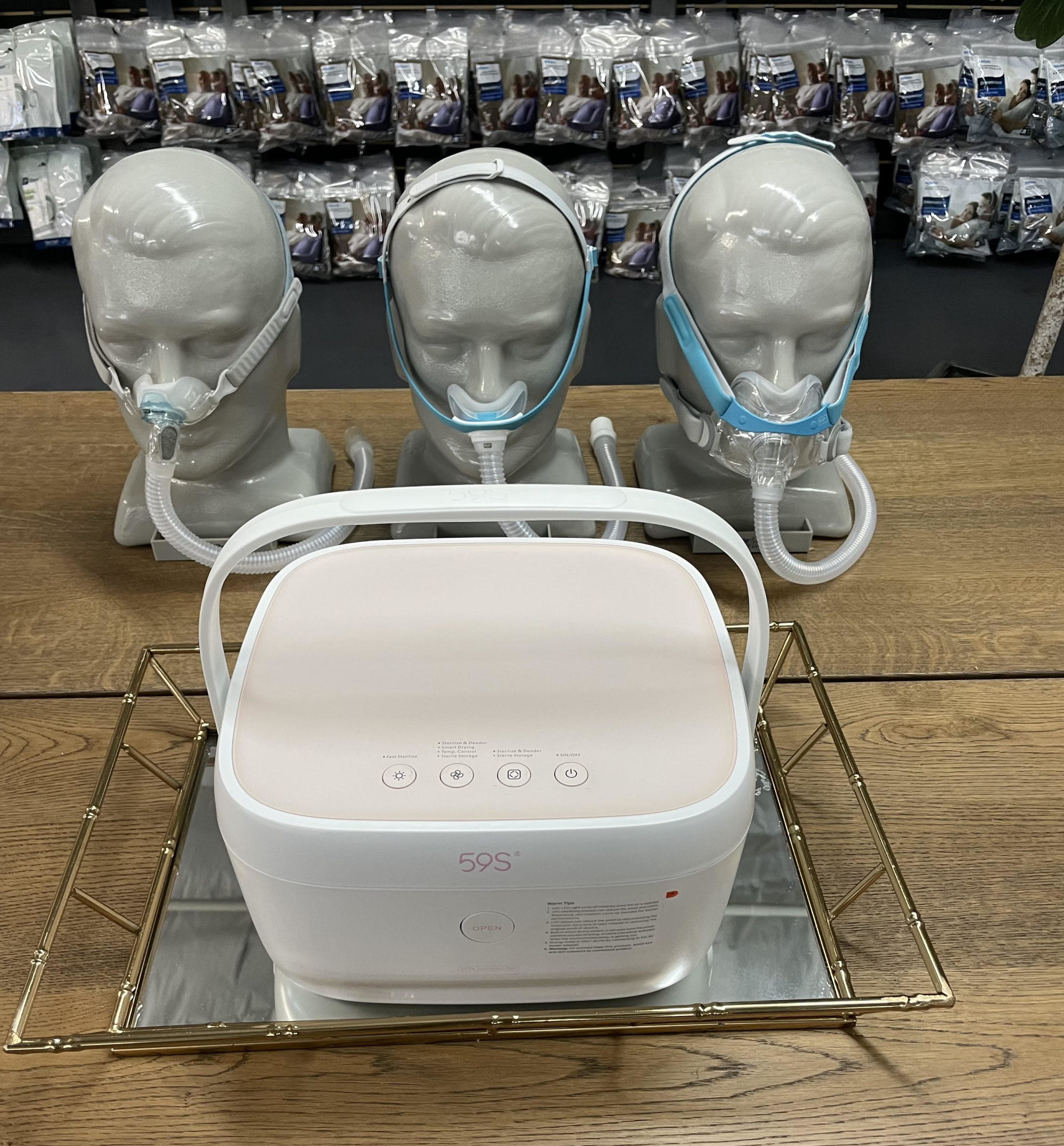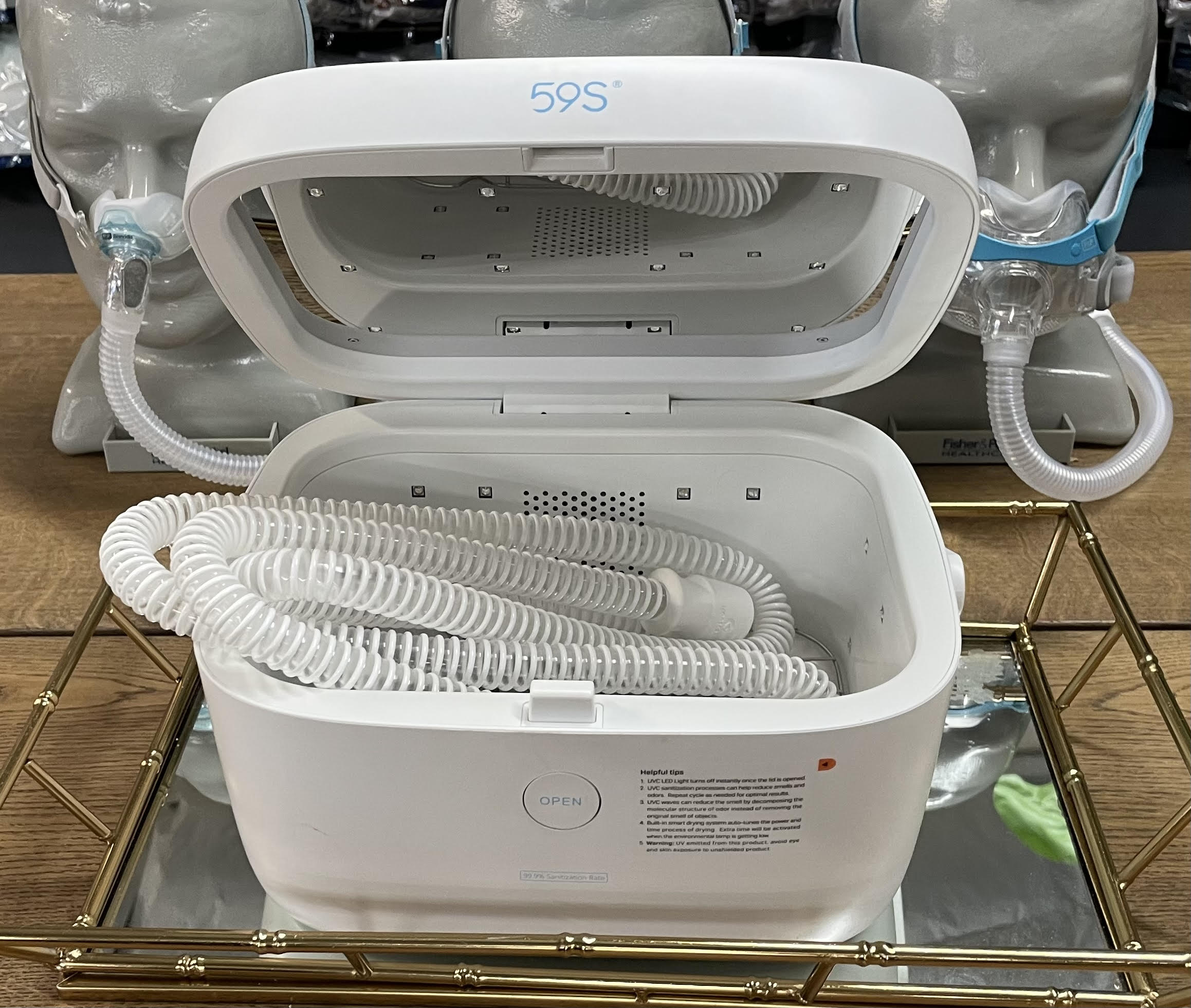 The 59S UVC LED Light CPAP & BiPAP Supplies Cleaner and Sanitizer uses no harmful chemicals such as ozone or mercury which can be found in some CPAP cleaners. The 59S Sanitizer features integration of UV-C LED, heat, and circulated air. It is a great option to consider for cleaning and disinfecting your CPAP’s or BiPAP’s machine or mask replacement parts along with your household items. The 59S Sanitizer uses 40 individual UV-C lights coming from 5 sides to sterilize anything that fits inside the Sanitizer in just 3 minutes with 3 sterilization modes available.