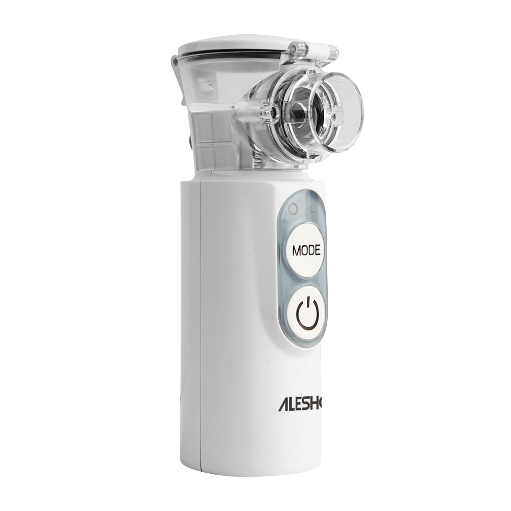 The Aleshon Ultrasonic Travel Mini Mesh Nebulizer for Adults and Kids is a pocket sized nebulizer for both adults and children. Mini Mesh Nebulizer can be used for various respiratory diseases and symptoms such as asthma, chronic bronchitis, cough, sore throat, common cold and etc. It’s suitable for babies, children of all ages, and adults. The compatible mouthpiece and two different masks make the correct inhalation particularly easy, and they also adapt to the size of the face. The smart respiratory modern technology allows the nebulizer to actively atomize medicine while the patient is inhaling and and stops atomizing while the patient is exhaling.