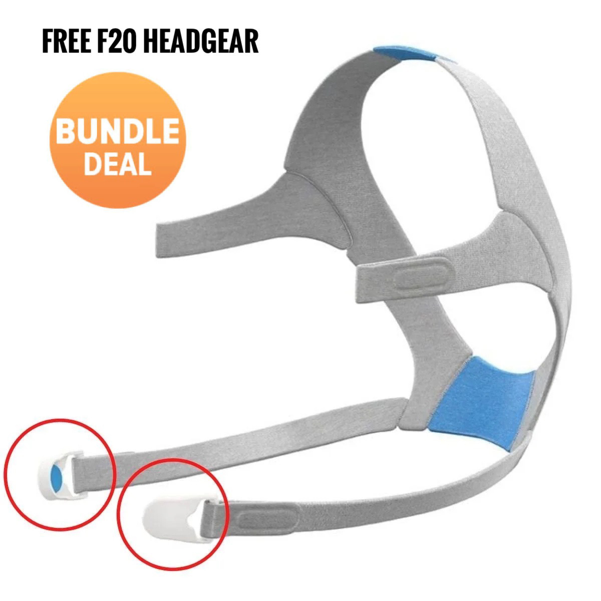 The Bundle Deal: Replacement Magnetic Clips with FREE Headgear for ResMed AirFit™ and AirTouch F20 Full Face Mask includes AirFit F30 magnetic clips with one-size-fits-all F30 headgear. The Headgear for the AirFit™ F30 Full Face Mask is made of flexible nylon. It’s soft, flexible, one-size-fits-all headgear. Super easy to quickly slip on and adjust for the perfect fit.It is designed to minimize touch points on the face. This helps with reducing irritation and red marks on the face. Compatible with ResMed AirFit F20 and AirTouch F20 CPAP Mask.