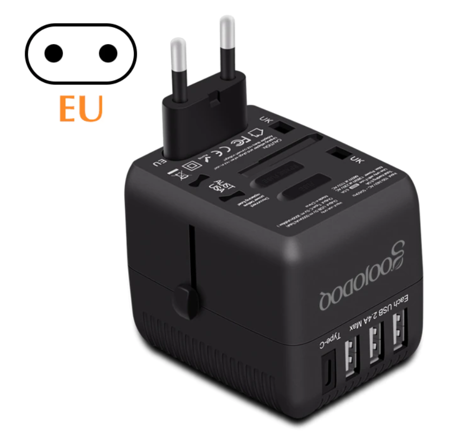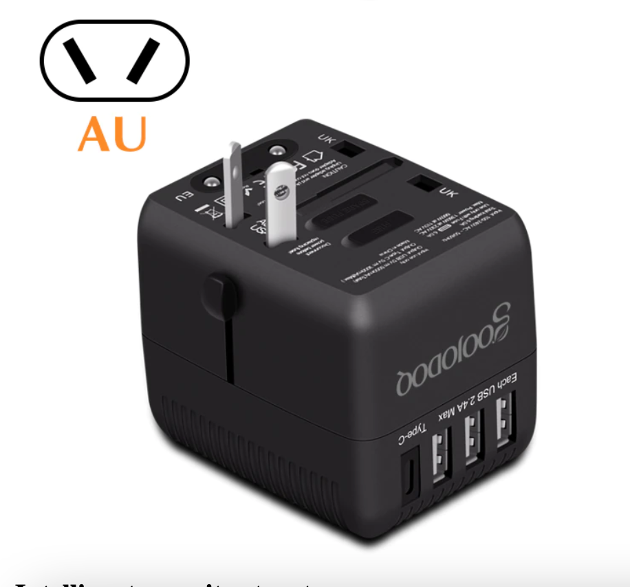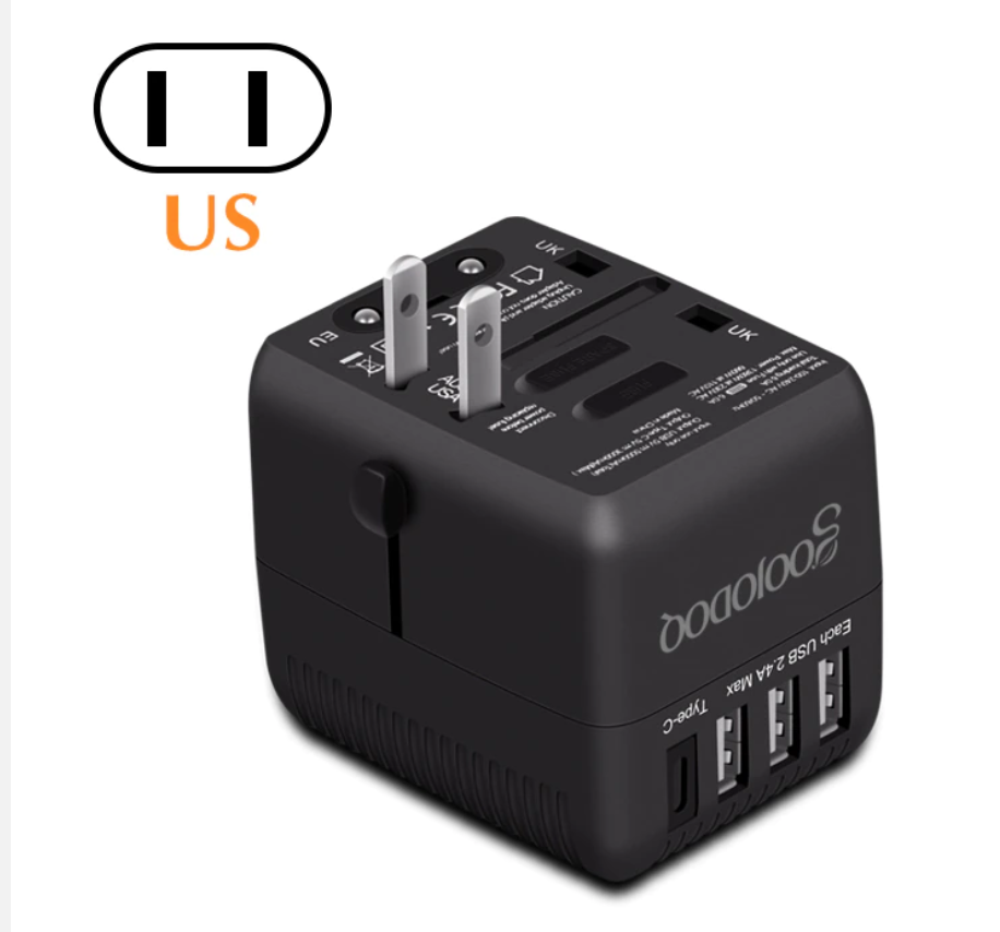 The CPAP Store USA Travel Power Adapter With 3-USB Ports and 1-Type C For All CPAPs and BiPAPs Machines is an all-in-one adapter that allows you to plug in and power up dual voltage CPAP and BiPAP machines used in various countries including US, EU, AU, UK and in 192 other countries.