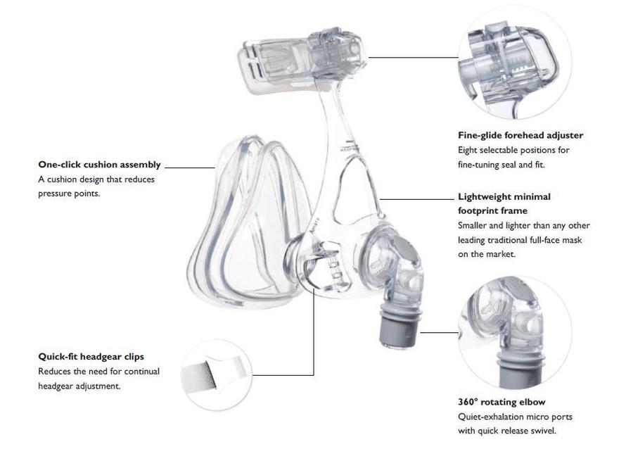 The Philips Respironics Amara Full Face CPAP Mask Assembly Kit, a smaller, lighter, and easy to use. The Amara Full Face mask is all of these things and more. It has a minimalist design that looks less intimidating. Amara is proven to easily fit 95% of patients faces. With one simple click, any size cushion snaps into one mask frame. Its sophisticated yet simple design makes dis-assembly and reassembly for cleaning easier than ever. Headgear NOT included! This is the replacement Assembly kit for Philips Respironics Amara Full Face CPAP / BiPAP Mask with Headgear. Clearance item.