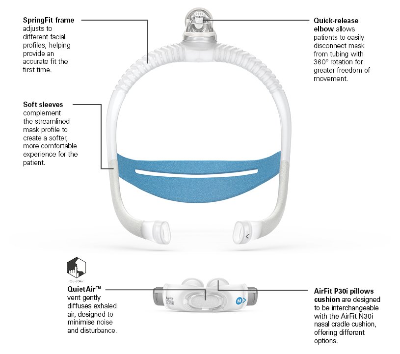 2 reviews for ResMed AirFit™ P30i Nasal Pillow CPAP / BiPAP Mask with Headgear FitPack