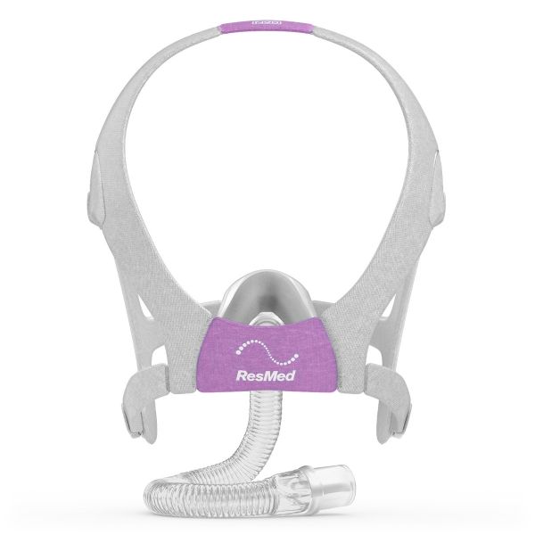 The ResMed AirTouch™ N20 For Her Nasal CPAP / BiPAP Mask with Headgear – features ResMed’s softest ever UltraSoft Memory Foam Cushion. UltraSoft cushions are incredibly soft, breathable, and adaptable so they provide a more gentle and flexible seal than traditional silicone cushions — even at high pressures. AirTouch N20 For Her is designed for women with a flexible frame and plush headgear, with lavender highlights, to deliver superior comfort and a secure seal with a minimal of facial contact. Available in Medium size.