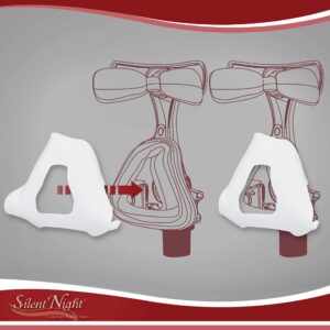 The Silent Night Nasal Cover Pad Liner To Prevent Sweat and Skin Irritation For Nasal CPAP Masks – is designed to sit between the CPAP mask and the face to create a soft, adaptive barrier that eliminating air leaks, reducing pressure marks, sweat and skin irritation. The Silent Night’s plush MicroPillow fabric features Quick Stick tabs so the pads won’t move or shift while sleeping with a CPAP Mask. Ideal fit for most full coverage nasal CPAP masks. The full coverage nasal CPAP masks are the cushions that cover the tip of the nose. An example would be ResMed AirFit N20 Nasal, Fisher & Paykel Simplus or Eson 2 Nasal, Philips Respironics Wisp or DreamWisp Nasal CPAP Mask. This is a one to two months supply includes 4 nasal pads. Each liner lasts 10 to 12 days.