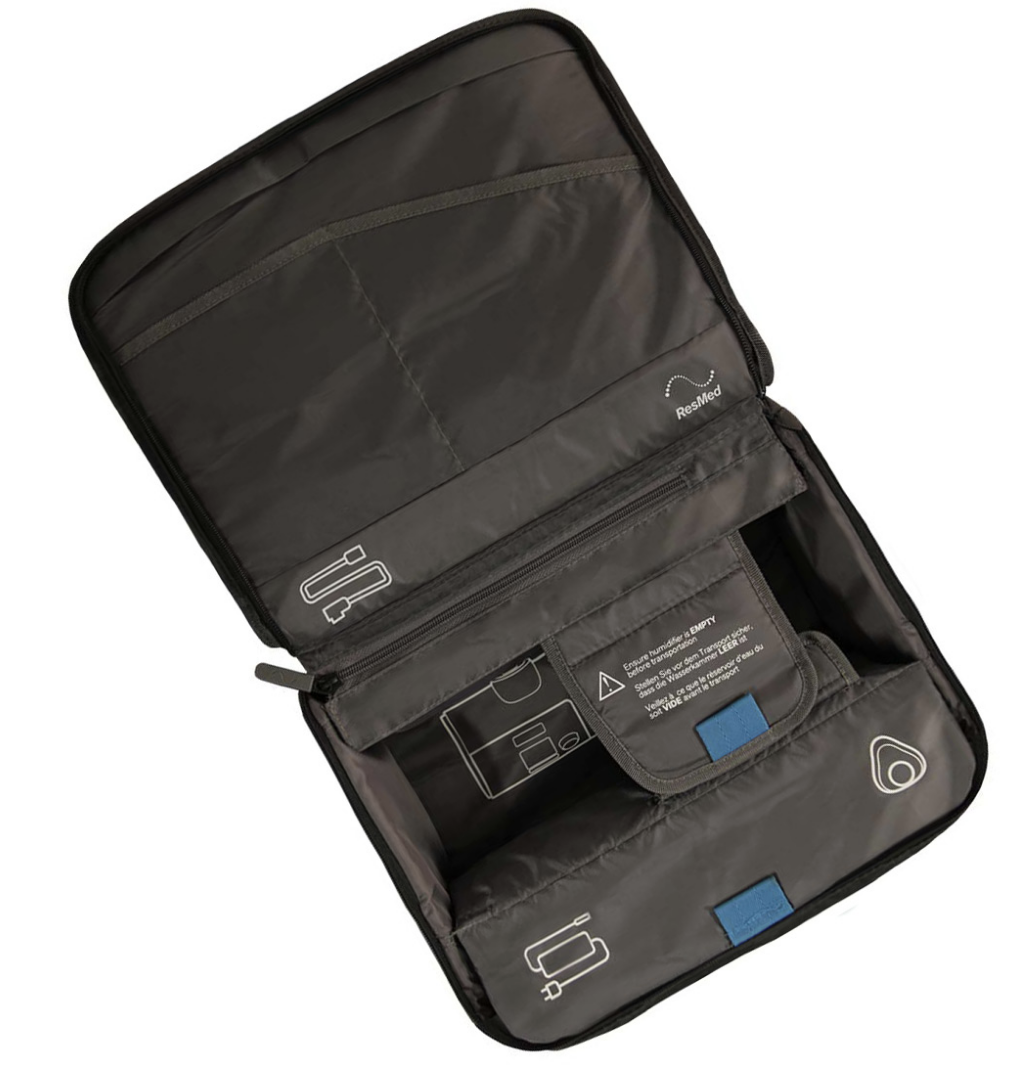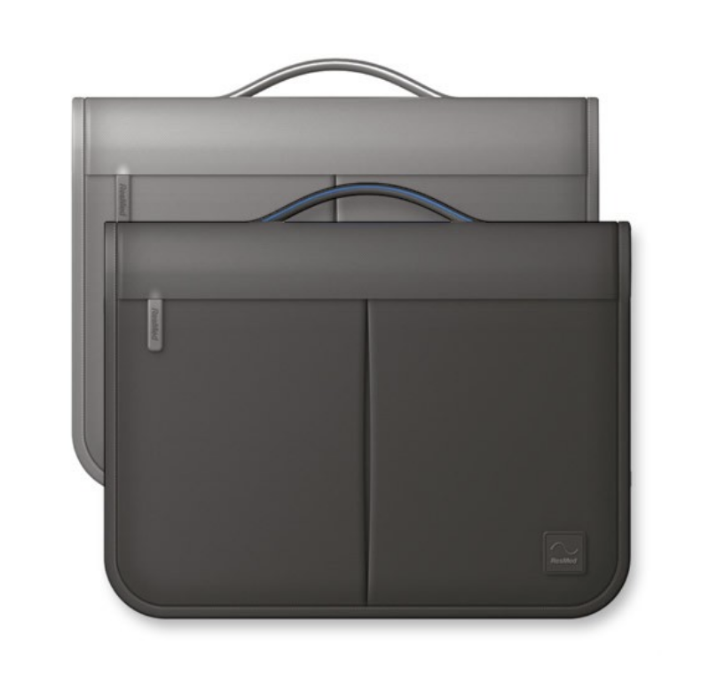 The Travel Bag for ResMed AirSense™ 10, AirCurve™ 10 & AirStart™ 10 Series CPAP / BiPAP Machine is a sleek Laptop Style Travel Bag is designed for ResMed CPAP and BiPAP machines. The travel bag comes with a carry handle and a shoulder strap for convenient travel. The bag also has a strap across the back of the bag, allowing it to be slipped over the handle of a suitcase. The ResMed Air 10 Travel Bag is capable of storing the CPAP or BiPAP machine along with the HumidAir™ heated humidifier, tubing, and a power supply. Available in light or dark gray.