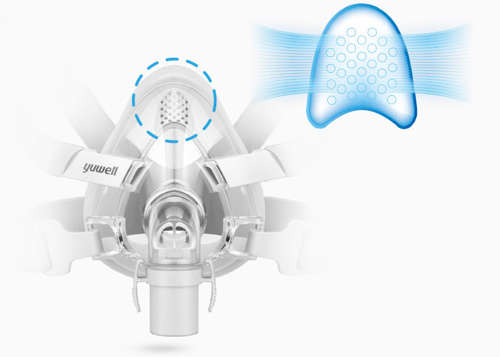 The Yuwell BreathWear YF-02 Full Face CPAP / BiPAP Mask is the newest full face CPAP and BiPAP Mask from Yuwell covering the nose and mouth without the aid of a forehead support. This full face style mask is one of the most widely used CPAP masks for sleep apnea – it fits almost anyone at any pressure. At the ears, the mask frame connects to headgear which covers the circumference of the head with minimal fabric. The BreathWear YF-02 Full Face CPAP Mask is made with adaptive easy-flex technology with a U-shaped feature on the bridge of the nose creating a reliable seal without generating excessive pressure. The adoptive silicone cushion allows the full face mask to automatically adjusts according to different face shapes The inside of the mask features an Ultra Comfort Seal Tight, which is airtight, light and soft cushions made to improve fit and comfort. The full cushion design covers both the nose and mouth, allowing patient to breath freely. Yuwell has developed a new Quiet Vent Elbow for the BreathWear YF-02 CPAP masks which is 89% quieter than their previous masks. The BreathWear YF-02 is a comparable mask to the ResMed’s AirFit F20 Full Face Mask but at a fraction of the cost.